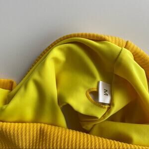 Unbranded yellow ribbed exterior bikini top, size medium. No padding but has openings on the interior to add if desired.