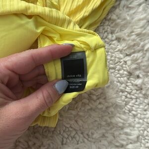 Stylish yellow ribbed bikini set. Features a knotted top and high-waisted bottoms.