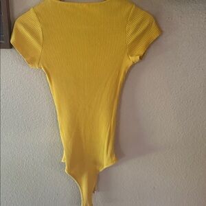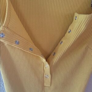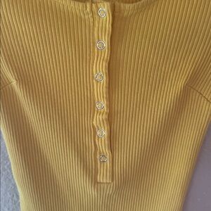 Stylish yellow ribbed bodysuit with button-up front. Perfect for casual wear.