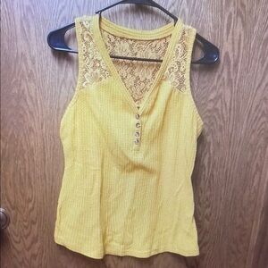 Yellow Ribbed Buttoned Tank Top