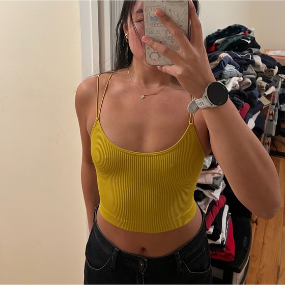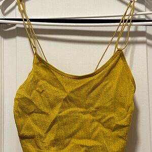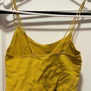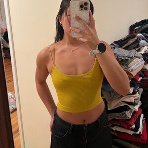 Brighten your wardrobe with this stylish yellow ribbed crop top. Perfect for casual outings and easy to pair with any outfit. Tag cut off but size small. Worn once. Super flattering very stretchy