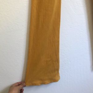Super cute. Purchased from forever21 but came with different brand label. Not sure why. Regardless it’s super cute. The legs have a straight slight slight flare at bottom and look super cute with both sneakers and sandals. I’m 5’5 and length almost hit floor but didn’t. Perfect length imo.