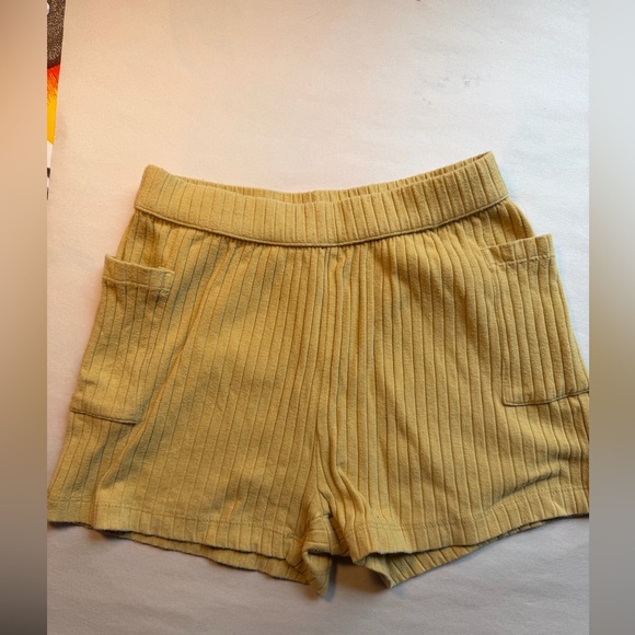 Stylish and comfortable yellow ribbed shorts perfect for casual outings. Features a soft fabric and convenient pockets.