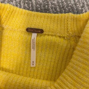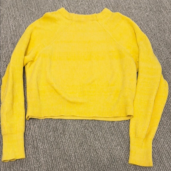 Bright yellow ribbed knit sweater with long sleeves. Perfect for a cozy and stylish look.
