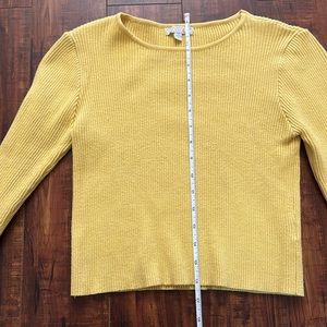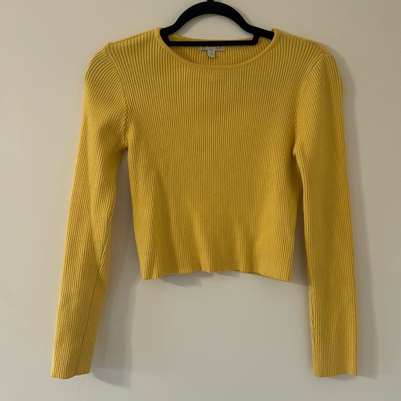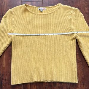 White ribbed sweater, slightly cropped (meets right where my jeans start, on my body). Soft and comfortable material, a great staple piece