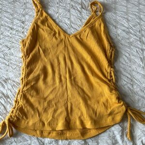 Brighten your wardrobe with this stylish yellow ribbed tank top. Perfect for casual outings, it features a comfortable fit and trendy side ties.