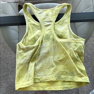 Brighten up your wardrobe with this stylish yellow ribbed tank top. Perfect for casual outings or layering, this top offers both comfort and style.
