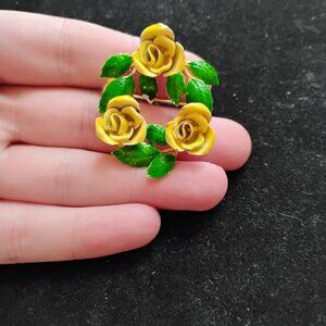 A Yellow Rose brooch. **Some chipping due to age & use** **bag F**