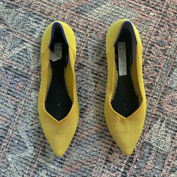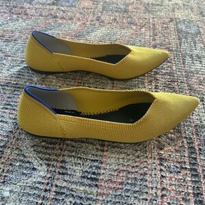 Yellow flats with a pointed toe. Stylish and eco-friendly design.