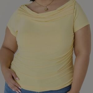 Yellow Ruched Cowl Neck Top