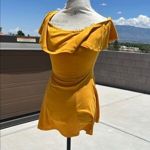 Yellow Ruched Off-Shoulder Mini Dress