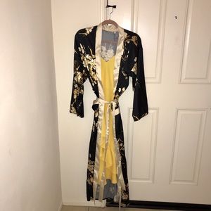Brand new(no tags). Gorgeous yellow ruffled midi...goes well with Floral Kimono Robe/Jacket(NOT INCLUDED) See Separate listing!