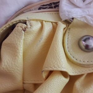 Brand new adorable yellow ruffle purse. Three inner pockets, one with zipper. Cute print inside. Zipper closure. 13 inches long, 7 inches tall. Straps are 8 inches. Made of fake leather. Super cute and in almost perfect condition. Has a few minor scuffs as shown in pictures. 😍