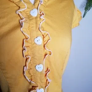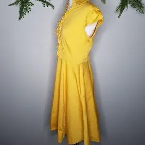 Brighten your wardrobe with this charming yellow ruffle button-up dress. Perfect for any occasion, this dress offers a playful yet elegant look.