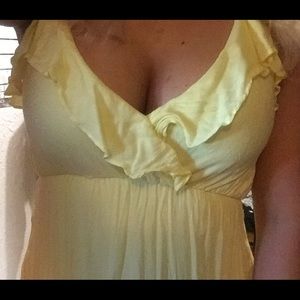 Tried on but never worn. Size Small Charlotte Russe Yellow Dress. Vneck with ruffles. Spaghetti straps.