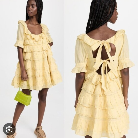 Charming yellow ruffle dress featuring a bow back design. Perfect for a sunny day out.Aus size 3. Fits US size 8 -10. Brand new , no tags