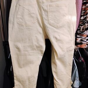 Chic yellow pants with ruffle hem. Perfect for a stylish look.