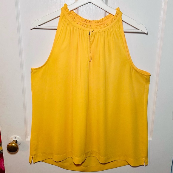 Brighten your wardrobe with this vibrant yellow sleeveless top. Perfect for any both dressy and casual outings.