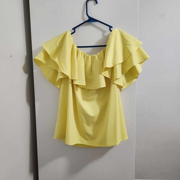 Brighten your wardrobe with this stylish yellow ruffle off-shoulder top. Perfect for any occasion, this top adds a touch of elegance and fun to your outfit.