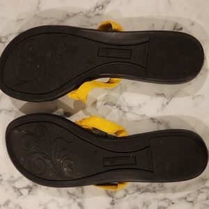 Step into summer with these vibrant yellow floral sandals. Perfect for adding a pop of color to any outfit. Very gently worn.