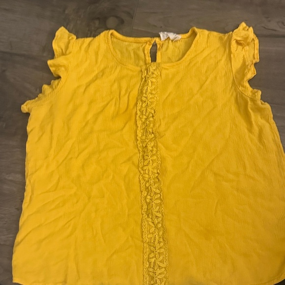 Brighten your wardrobe with this vibrant yellow blouse. Featuring charming ruffle sleeves and delicate lace detailing, it's perfect for any occasion.