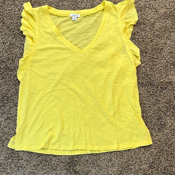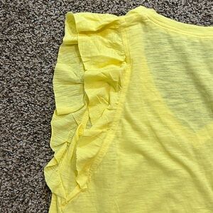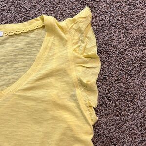 Chic yellow tee with ruffle sleeves. Perfect for casual wear.