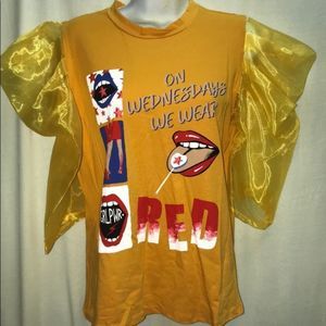 Available in sizes small, medium and large Ruffle sleeves