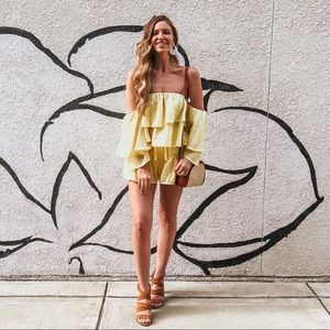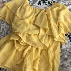 The funnest sunny yellow ruffle set. Flattering. Felt so mama Mia in this.