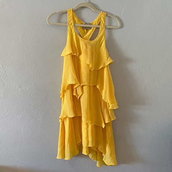 Super fun and flirty sun yellow dress in smooth and lightweight rayon/poly blend. Excellent used condition.