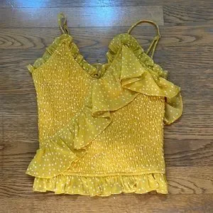 Super cute yellow top with white polka dots. Never worn. Bought from a boutique at 30A