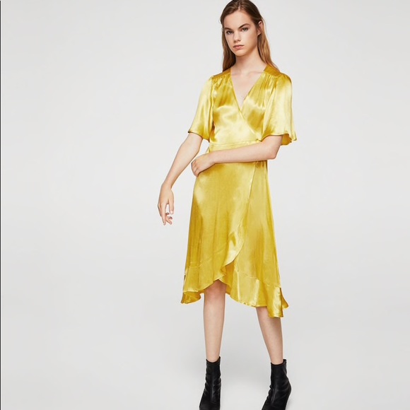 Yellow Ruffle Wrap Dress
