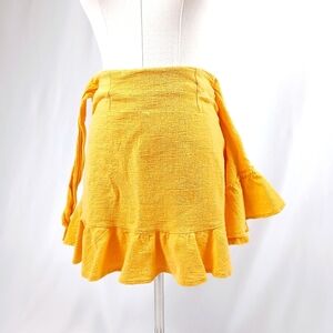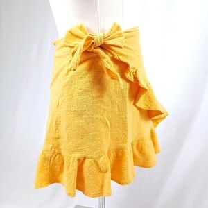 Yellow Ruffle Wrap Skirt M Boho Style Adjustable Tie Waist Mini-Length Textured