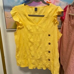 Yellow Ruffled Button-Down summer spring Top