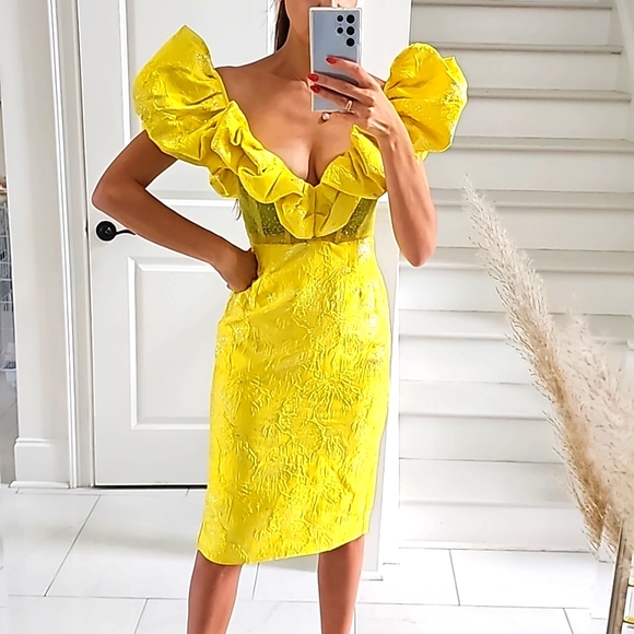 Yellow Ruffled Cocktail Dress