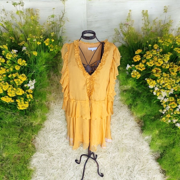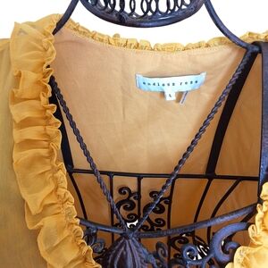 Embrace elegance with this stunning yellow ruffled dress. Perfect for any occasion, it offers a vibrant touch to your wardrobe. The Endless Rose Elegant Sunflower Yellow Dress in size L is a stylish and versatile piece perfect for various occasions such as travel, weddings, parties, and casual wear. This sleeveless, V-neck dress features a pullover closure and is made of polyester material, making it comfortable and easy to wear. It has a drawstring waist for just the right amount of definition. The bright yellow color, short dress length, and mini style make it a flattering and eye-catching choice for the summer and spring seasons. With its lined features and quality construction, this dress from Endless Rose is a fashionable addition to any woman's wardrobe.