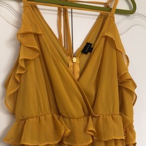 Elegant yellow maxi dress with ruffle details. Perfect for any occasion.