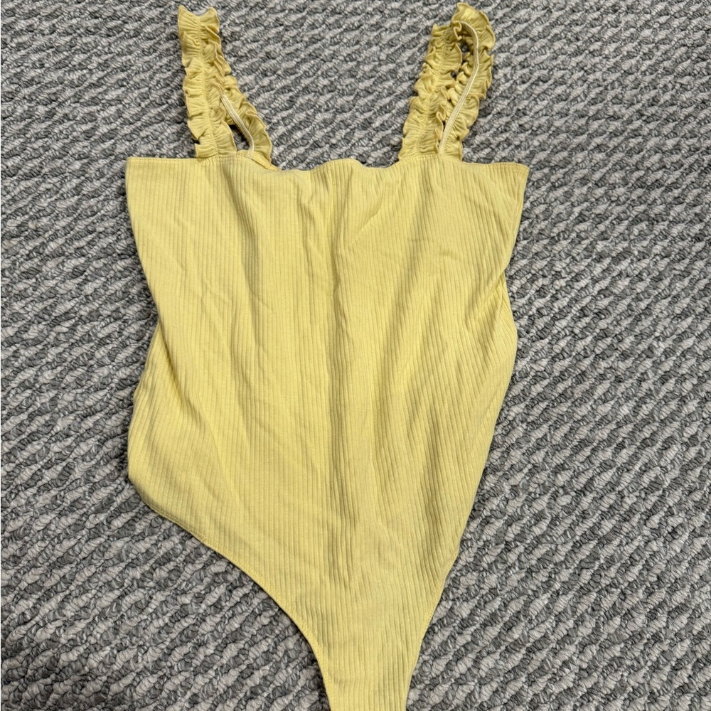 Brighten up your wardrobe with this charming yellow one piece. Featuring playful ruffles, it's perfect for any occasion.