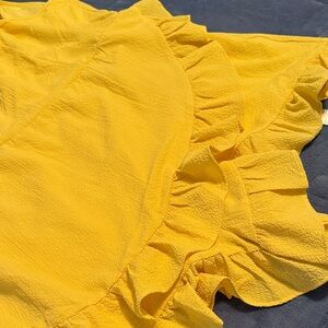 Chic light yellow top with gathered details. Ideal for casual outings. Item 137