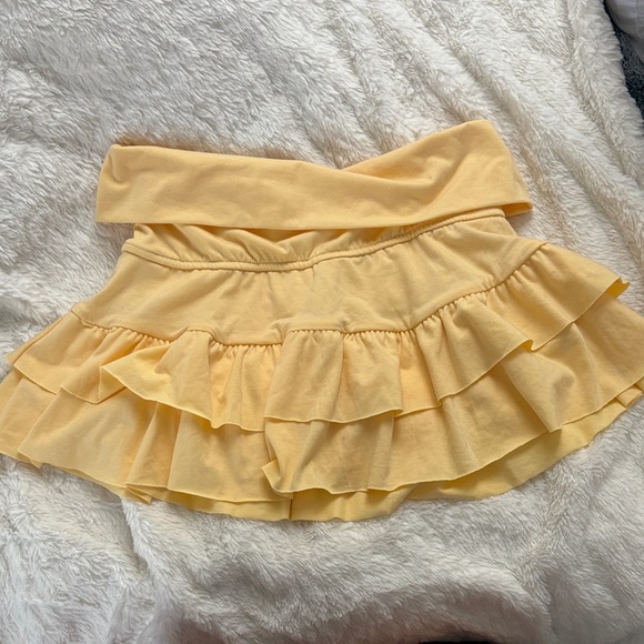 Charming yellow ruffled skirt w built in shorts with layered design. Perfect for the beach or whatever you want !