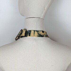 As much as a fashion statement as a practical accessory, this soft and comfortable ascot scarf will set you apart from every one else! Made from an upcycled, silk necktie, in yellow with a safari animal print.