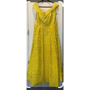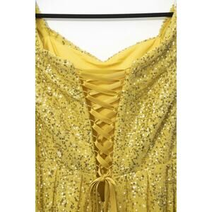 Yellow Sequin Off the Shoulder Pleated Corset Back Formal Gown Sz 20 NWOT