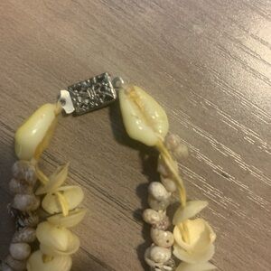 Stylish yellow double-strand necklace featuring natural shell and bead accents. Lightweight and beach-inspired design for easy everyday wear. Complements neutral and warm-toned outfits with bright yellow color.