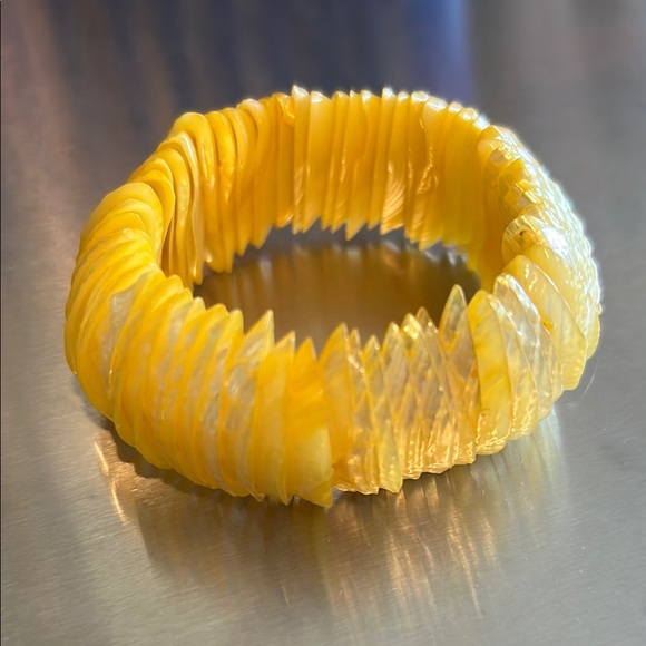 Vibrant yellow shell bracelet. Perfect for adding a pop of color. Elastic/stretch to put on.