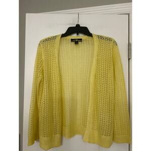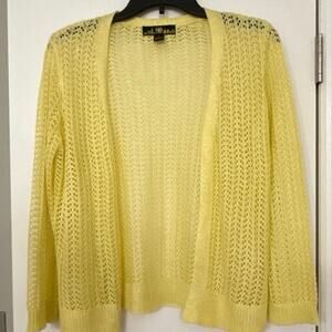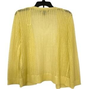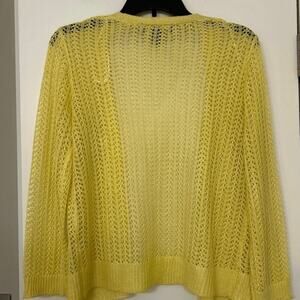 Yellow Shimmer Thread Open Knit Open Front Cropped Cardigan Sweater Size Large