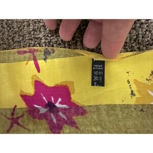 Yellow Silk Floral Rectangle Scarf Womens Made in France 9x47in Lightweight