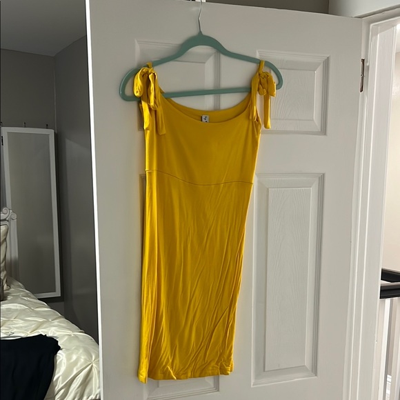 Brighten your wardrobe with this stunning yellow sleeveless dress. Perfect for any occasion.