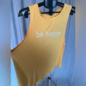 Brighten your day with this cheerful yellow sleeveless top featuring a 'Be Happy' print. Perfect for casual outings.
