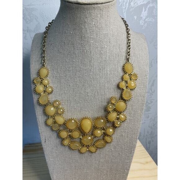 Yellow Statement Bib Necklace Gold Tone Chain Adjustable Clasp Oval Teardrop