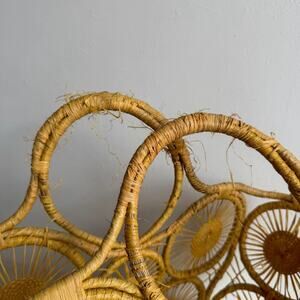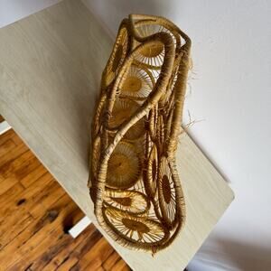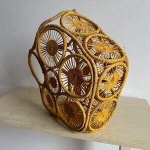 Details: Cute natural yellow raffia or rattan woven tote bag. Perfect summer bag for beach or picnics, or for home decor! Very cool artisan geometric sunburst design. Looks to be Mar Y Sol Forteleza Raffia Tote but no labels.