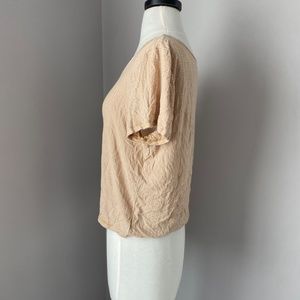 Yellow Stripe Cropped Flow Tee. Faux bottoms down collar. Unfitted.